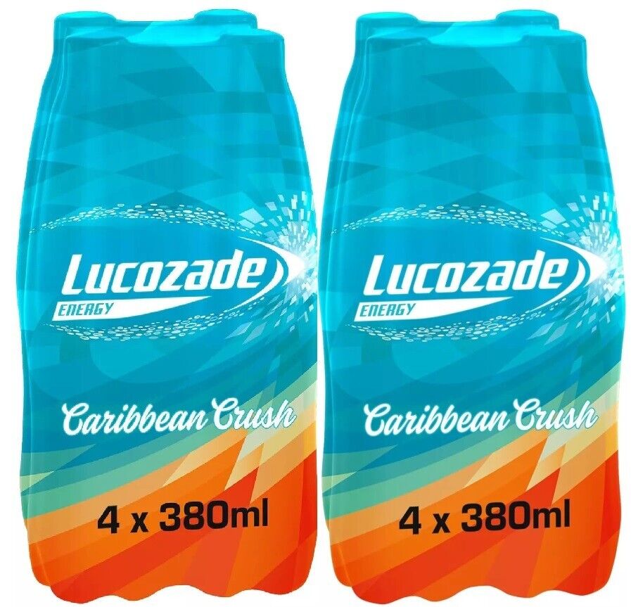 2 x Lucozade Energy Caribbean Crush 4x380ml 8 bottles total bbe april 25
