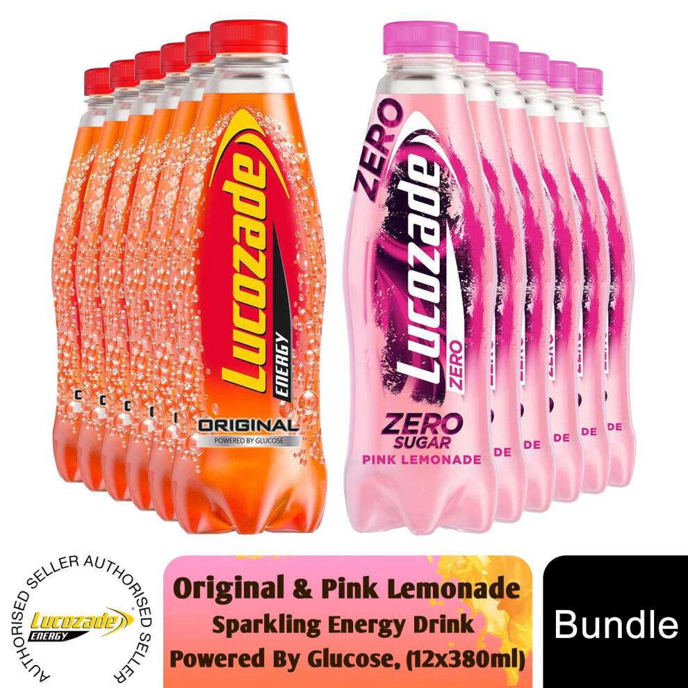 Lucozade Zero Pink Lemonade, Orange or Original Sparkling Energy Drink, 12x900ml