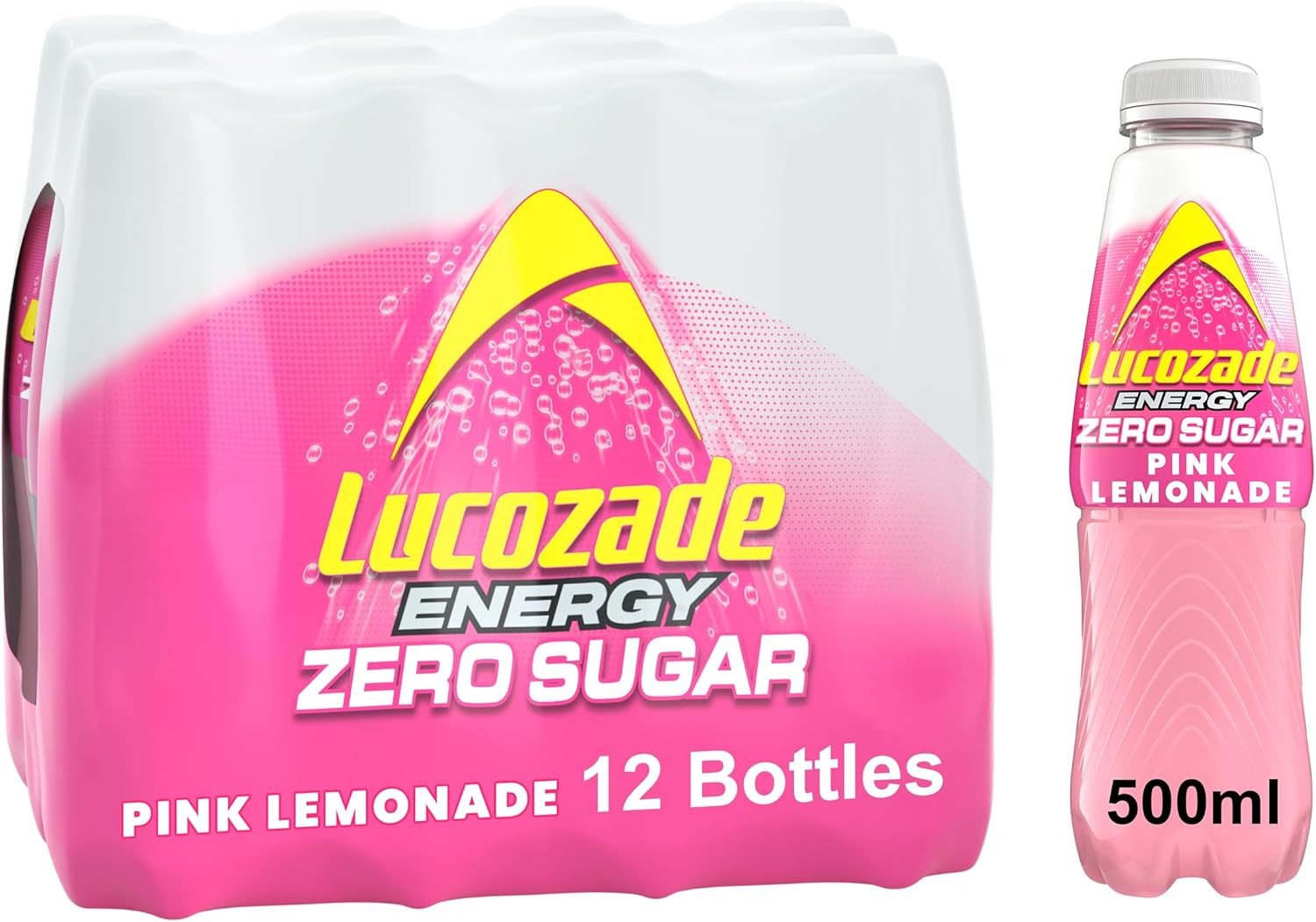 Lucozade Energy Zero Sugar Drink Pink Lemonade 12x500ml