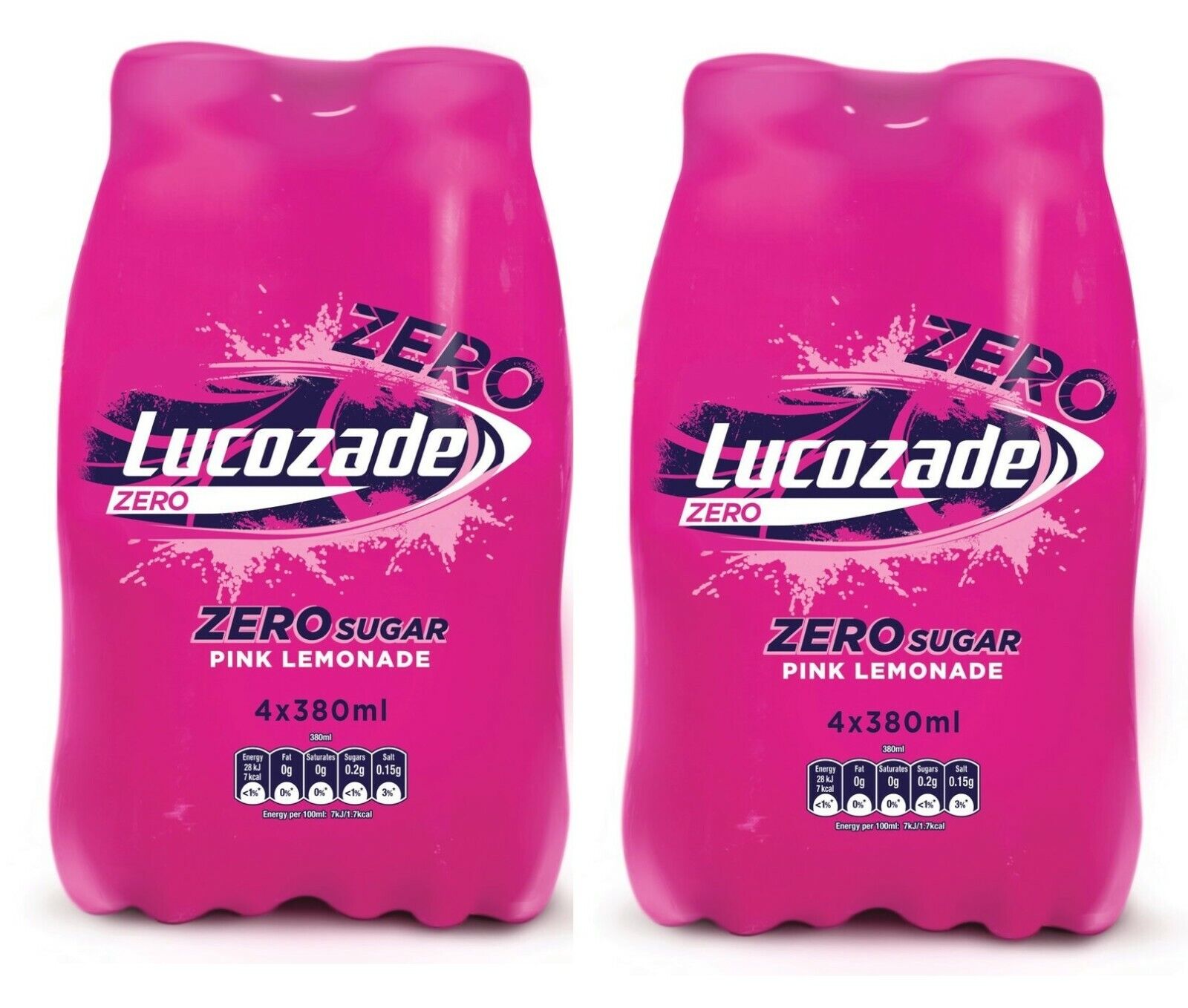 Lucozade Zero Fizzy Drink, Pink Lemonade Flavour, Sugar 380 ml (Pack of 4)
