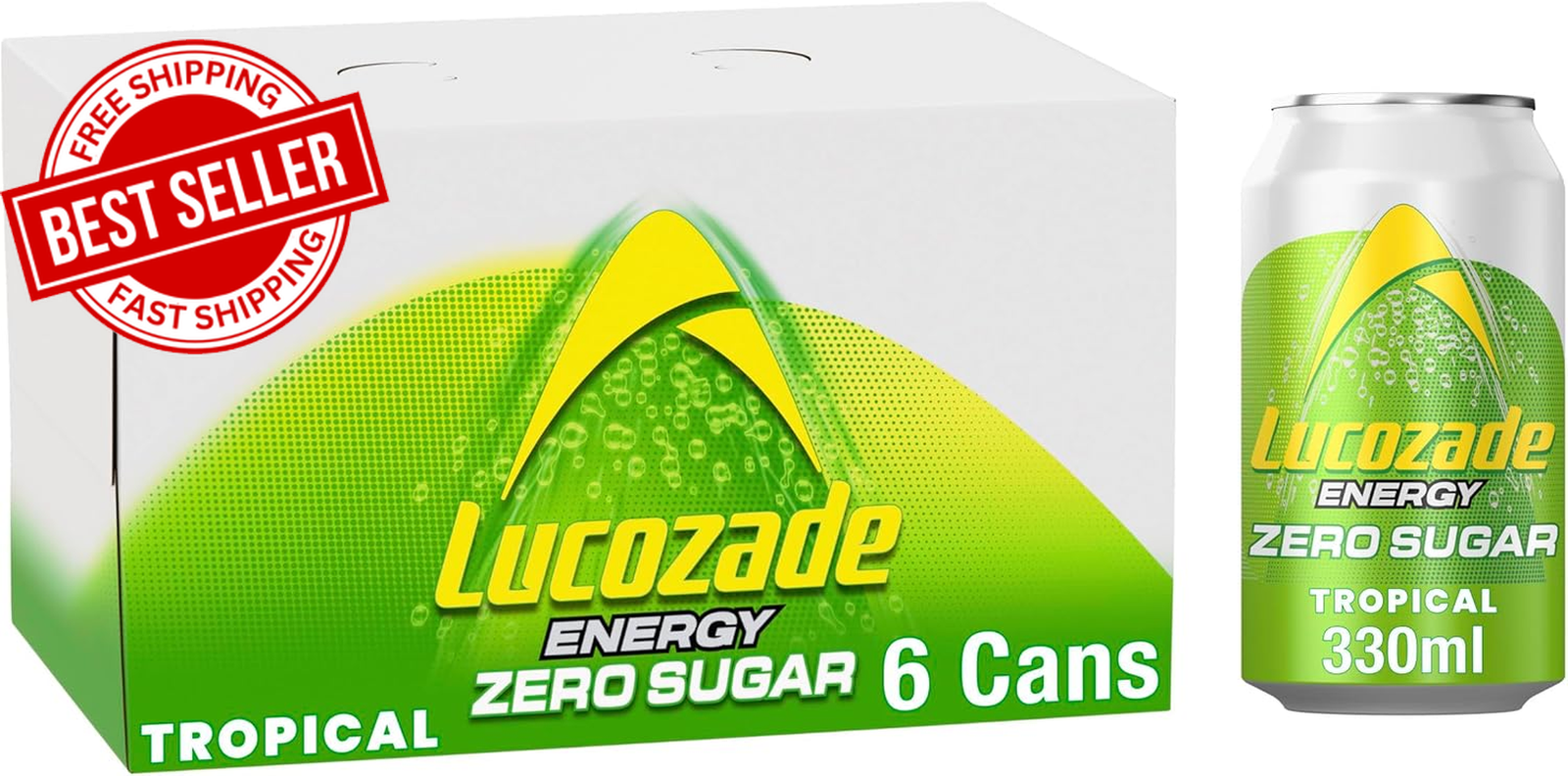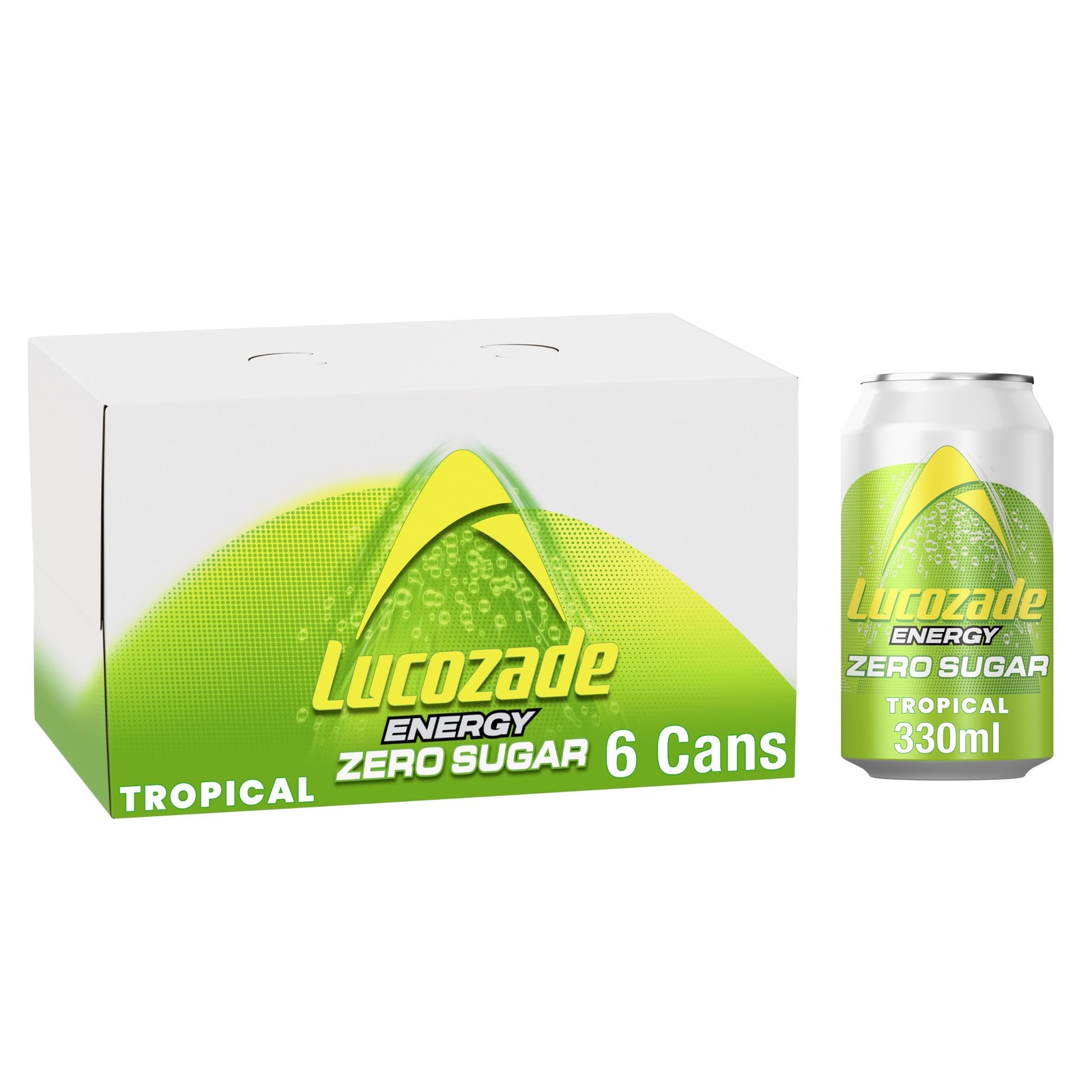 Lucozade Energy Zero Sugar Drink Tropical 330Ml Can (Pack of 6)