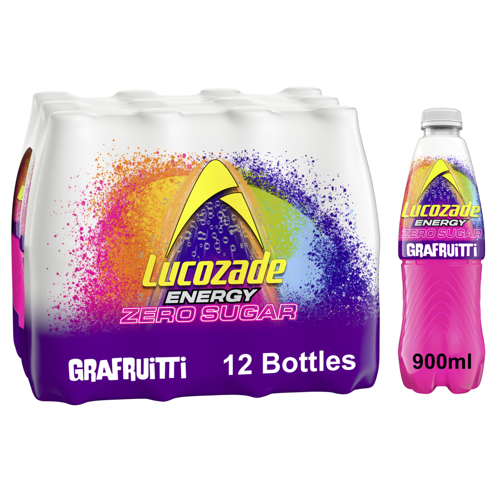 Lucozade Energy Zero Sugar Grafruitti Energy Drink With Vitamin B3, 12x900ml