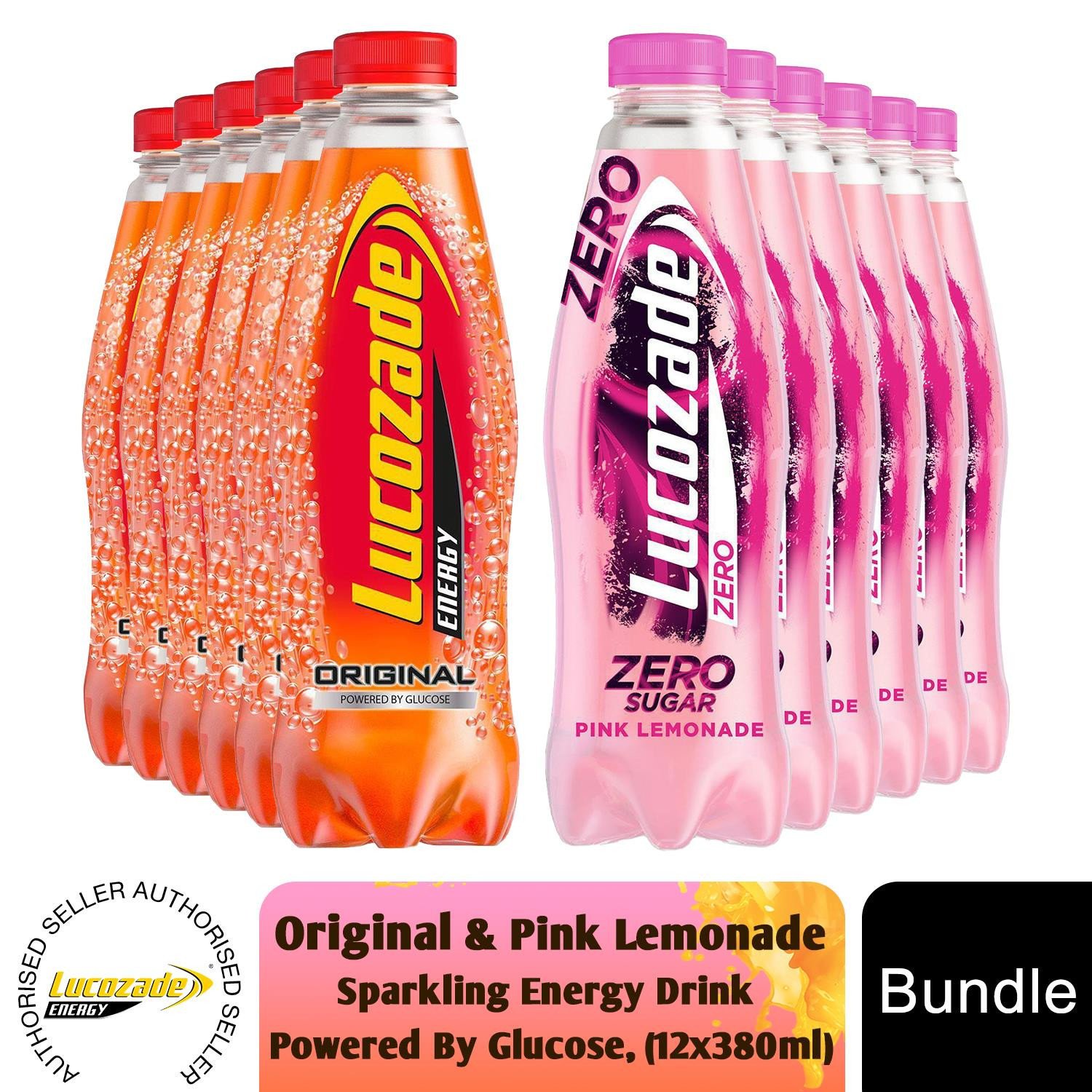 Lucozade Pink Lemonade & Original Sparkling Zero Sugar Energy Drink, 6x900ml