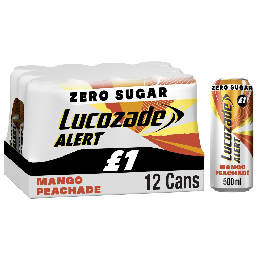 Lucozade Alert Energy Drink Zero Sugar Mango Peachade 250ml (Pack of 24)