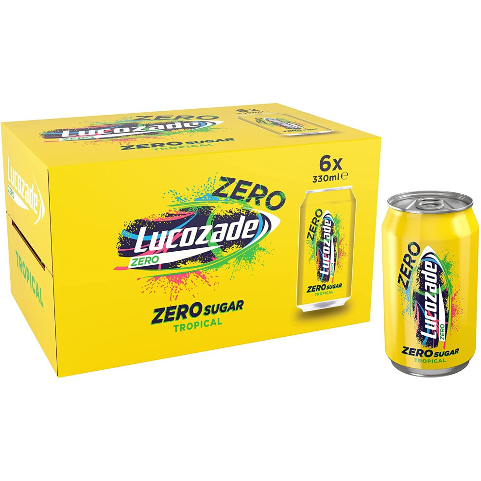 Lucozade Energy Zero Sugar Drink Tropical 330ml can (Pack of 6)