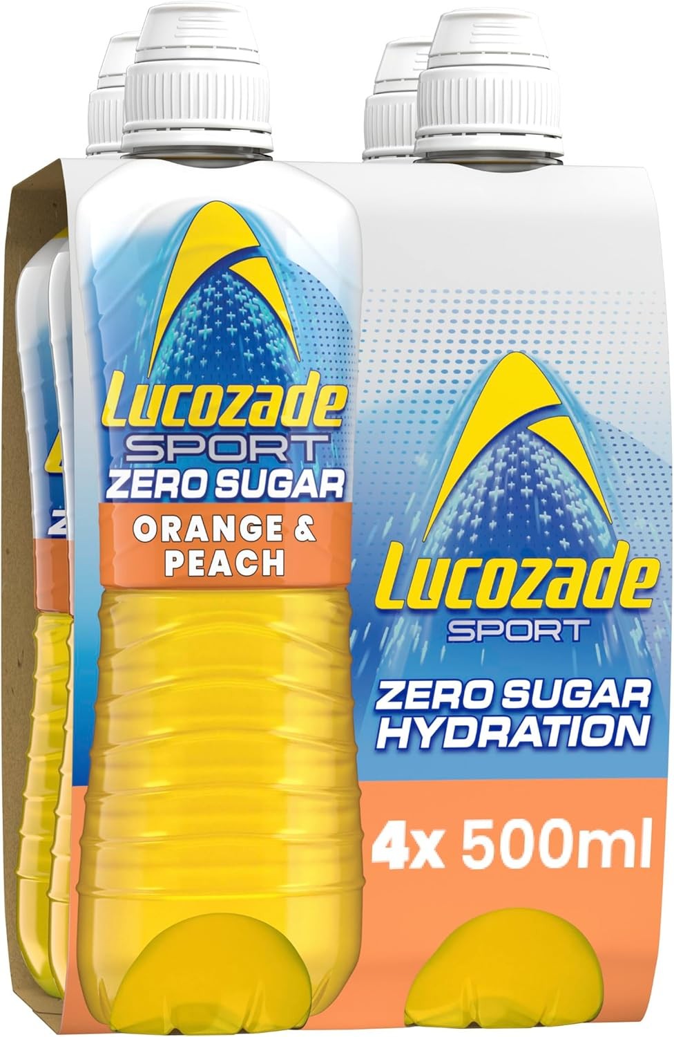 Lucozade Sport Zero Sugar - Orange & Peach 4x500ml | Sugar Free Sports Drink, w
