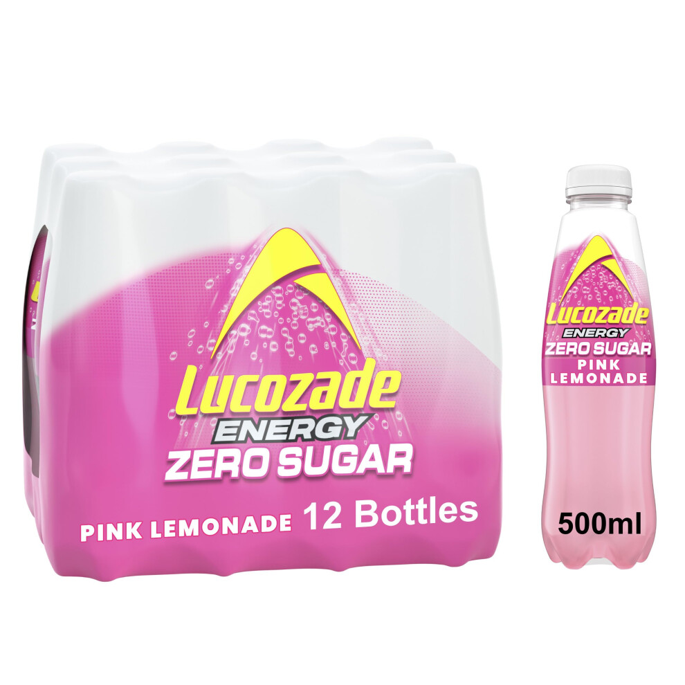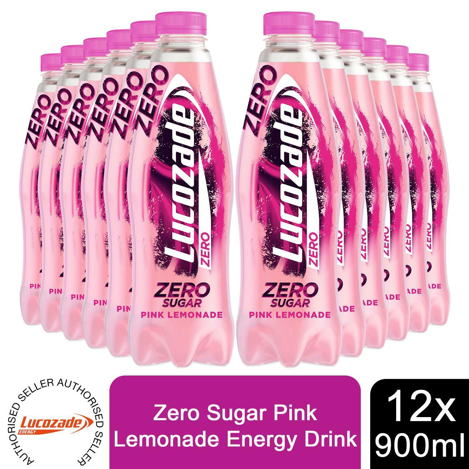 Lucozade Zero Pink Lemonade Sparkling Zero Sugar Fat Free Energy Drink, 12x900ml