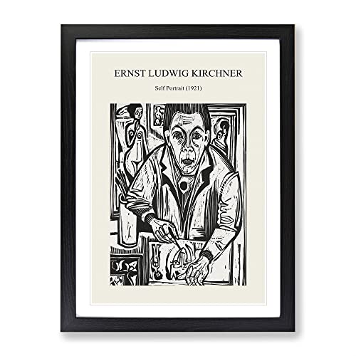 Self Portrait By Ernst Ludwig Kirchner Exhibition Museum Painting Framed Wall Art Print, Ready to Hang Picture for Living Room Bedroom Home Office Décor, Black A2 (64 x 46 cm)