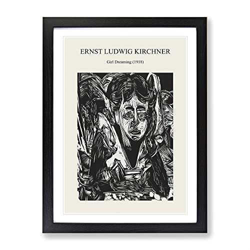 Girl Dreaming By Ernst Ludwig Kirchner Exhibition Museum Painting Framed Wall Art Print, Ready to Hang Picture for Living Room Bedroom Home Office Décor, Black A2 (64 x 46 cm)