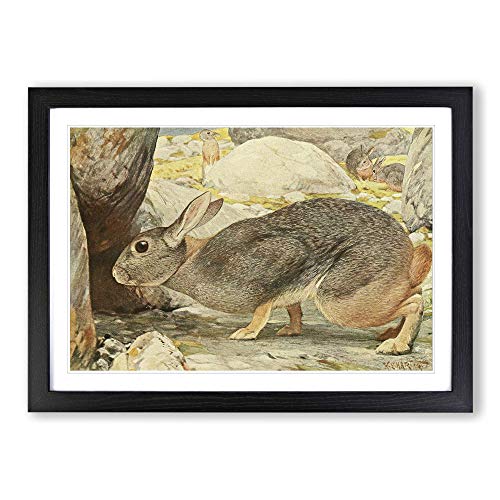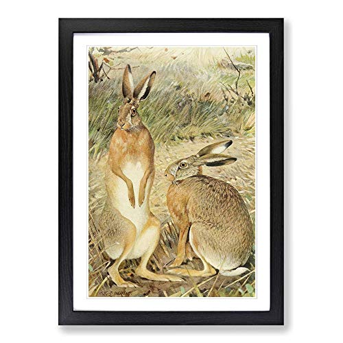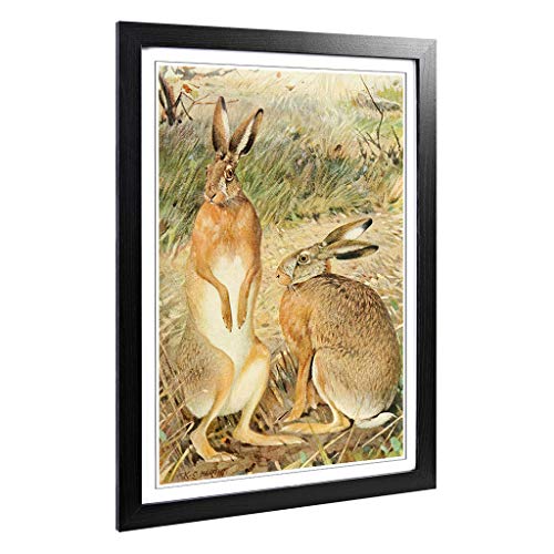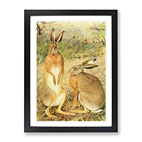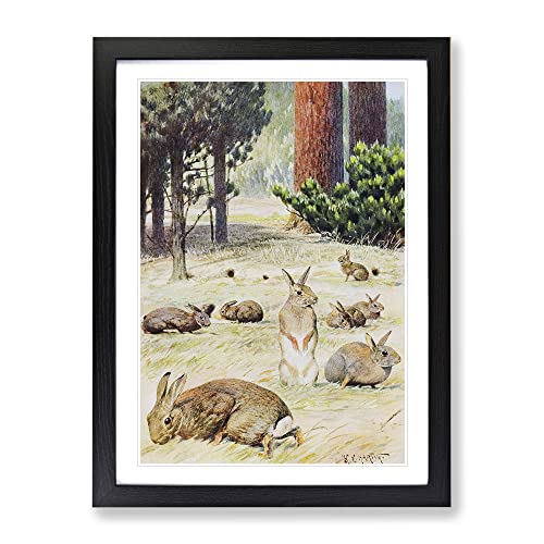 Vintage Karl Ludwig Hartig Wild Rabbits Vintage Framed Wall Art Print, Ready to Hang Picture for Living Room Bedroom Home Office Décor, Black A2 (64 x 46 cm)