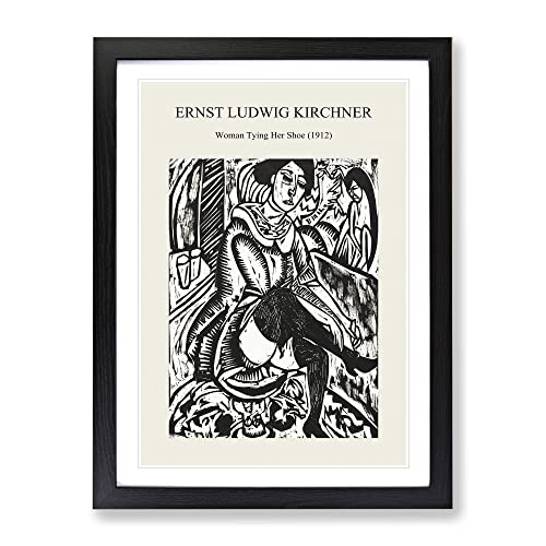 Woman Tying Her Shoe By Ernst Ludwig Kirchner Exhibition Museum Painting Framed Wall Art Print, Ready to Hang Picture for Living Room Bedroom Home Office Décor, Black A2 (64 x 46 cm)