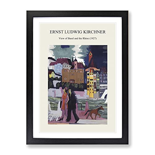 View Of Basel And The Rhine By Ernst Ludwig Kirchner Exhibition Museum Painting Framed Wall Art Print, Ready to Hang Picture for Living Room Bedroom Home Office Décor, Black A2 (64 x 46 cm)