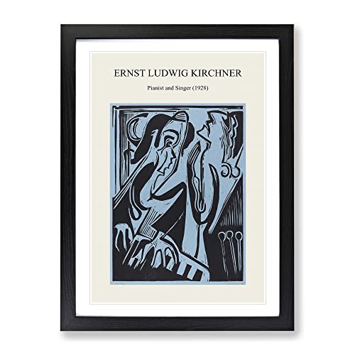 Pianist And Singer By Ernst Ludwig Kirchner Exhibition Museum Painting Framed Wall Art Print, Ready to Hang Picture for Living Room Bedroom Home Office Décor, Black A2 (64 x 46 cm)