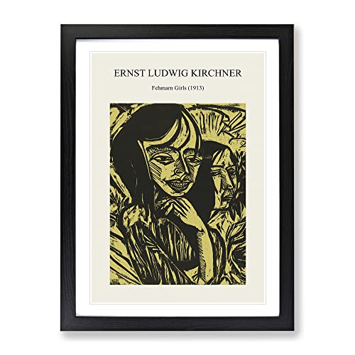 Fehmarn Girls By Ernst Ludwig Kirchner Exhibition Museum Painting Framed Wall Art Print, Ready to Hang Picture for Living Room Bedroom Home Office Décor, Black A4 (34 x 25 cm)