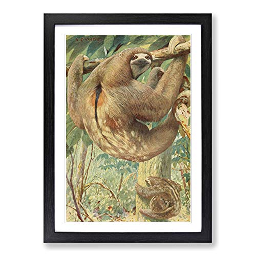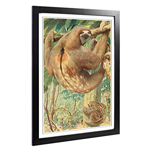 Big Box Art Framed Print of Vintage Karl Ludwig Hartig Bolivian Three-Toed Sloth Design | Wall Art Picture| Home Decor for Kitchen, Living Room, Bedroom, Office, Black, A2 / 24.5x18 Inch / 62x45cm