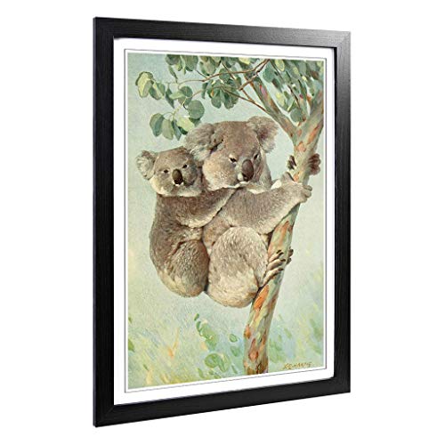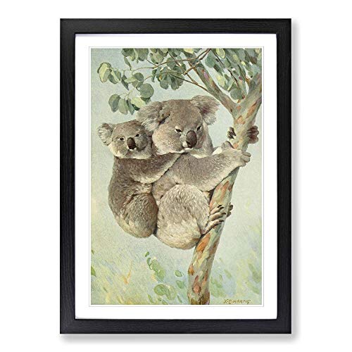Big Box Art Framed Print of Vintage Karl Ludwig Hartig Koala Design | Wall Art Picture | Home Decor for Kitchen, Living Room, Bedroom, Hallway, Black, A2 / 24.5x18 Inch / 62x45cm