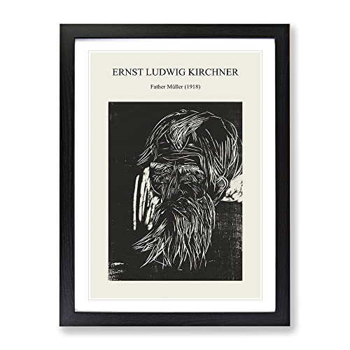 Father Muller By Ernst Ludwig Kirchner Exhibition Museum Painting Framed Wall Art Print, Ready to Hang Picture for Living Room Bedroom Home Office Décor, Black A4 (34 x 25 cm)