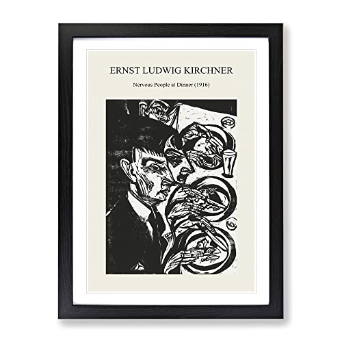 Nervous People At Dinner By Ernst Ludwig Kirchner Exhibition Museum Painting Framed Wall Art Print, Ready to Hang Picture for Living Room Bedroom Home Office Décor, Black A2 (64 x 46 cm)