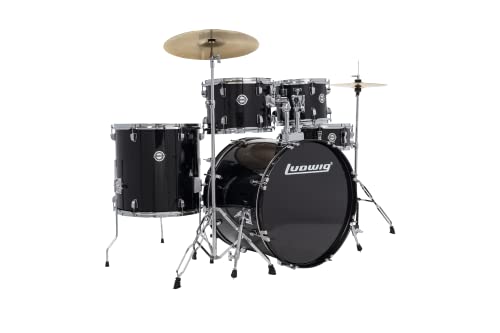 Ludwig Accent Drive Drum Kit for Beginner to Intermediate Drummers, 5-Piece Set includes 22" Bass Drum, Hi-Hats, Crash/Ride Cymbal and Throne - Black Sparkle (LC19511DIR)