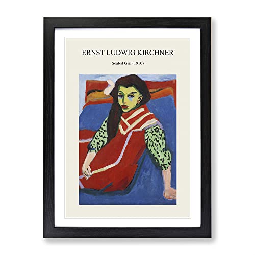 Seated Girl By Ernst Ludwig Kirchner Exhibition Museum Painting Framed Wall Art Print, Ready to Hang Picture for Living Room Bedroom Home Office Décor, Black A3 (34 x 46 cm)