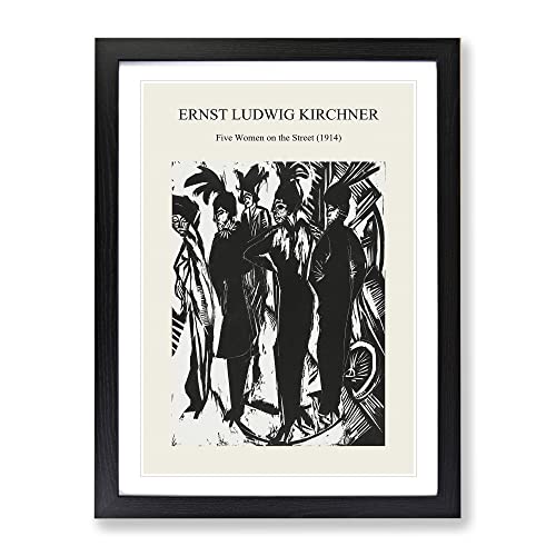 Five Women By Ernst Ludwig Kirchner Exhibition Museum Painting Framed Wall Art Print, Ready to Hang Picture for Living Room Bedroom Home Office Décor, Black A2 (64 x 46 cm)