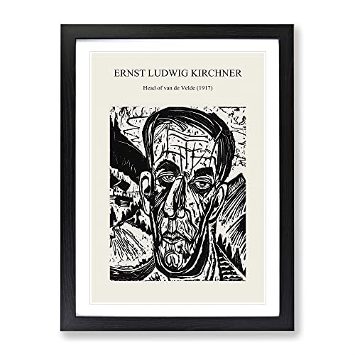 Head Of Van De Velde By Ernst Ludwig Kirchner Exhibition Museum Painting Framed Wall Art Print, Ready to Hang Picture for Living Room Bedroom Home Office Décor, Black A2 (64 x 46 cm)