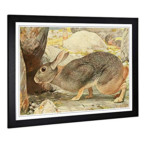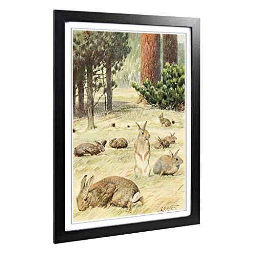 Big Box Art Framed Print of Vintage Karl Ludwig Hartig Wild Rabbits Design | Wall Art Picture | Home Decor for Kitchen, Living Room, Bedroom, Hallway, Black, A2 / 24.5x18 Inch / 62x45cm