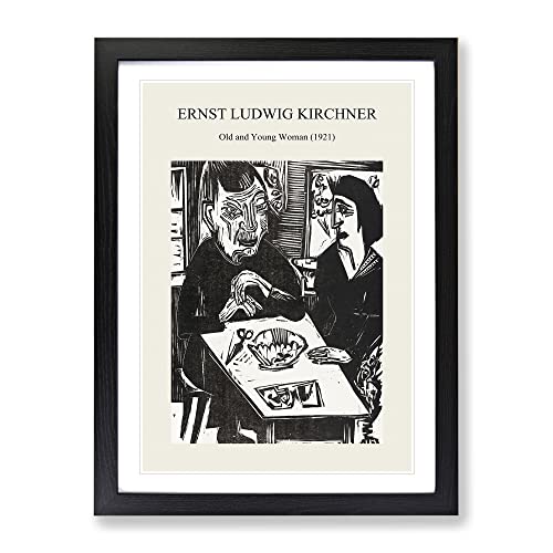 Old And Young Woman By Ernst Ludwig Kirchner Exhibition Museum Painting Framed Wall Art Print, Ready to Hang Picture for Living Room Bedroom Home Office Décor, Black A2 (64 x 46 cm)