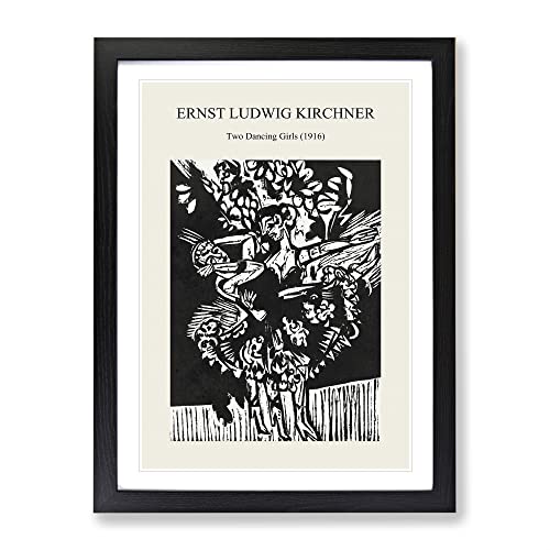 Two Dancing Girls By Ernst Ludwig Kirchner Exhibition Museum Painting Framed Wall Art Print, Ready to Hang Picture for Living Room Bedroom Home Office Décor, Black A3 (34 x 46 cm)