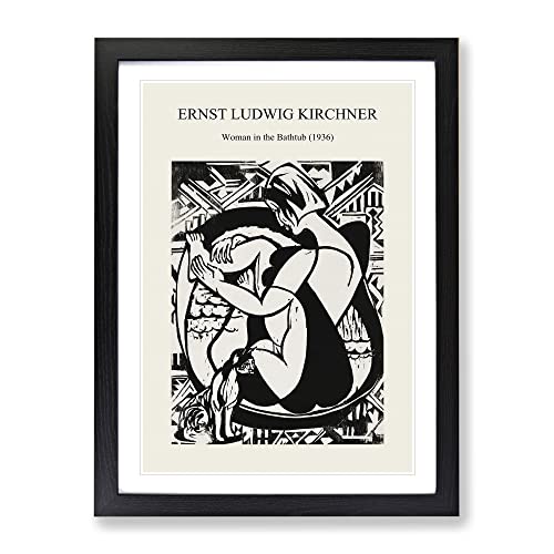 Woman In The Bathtub By Ernst Ludwig Kirchner Exhibition Museum Painting Framed Wall Art Print, Ready to Hang Picture for Living Room Bedroom Home Office Décor, Black A2 (64 x 46 cm)