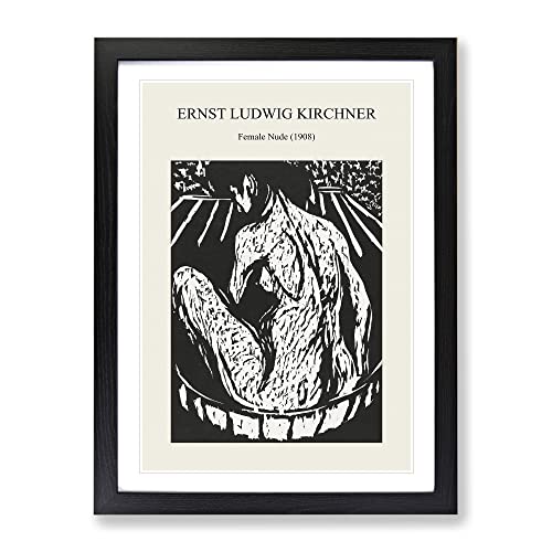 Female Nude By Ernst Ludwig Kirchner Exhibition Museum Painting Framed Wall Art Print, Ready to Hang Picture for Living Room Bedroom Home Office Décor, Black A2 (64 x 46 cm)