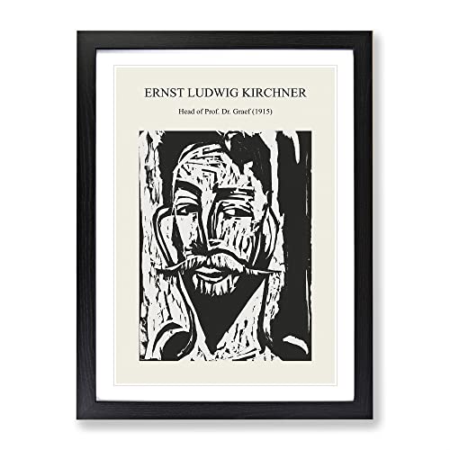 Head Of Prof. Dr. Graef By Ernst Ludwig Kirchner Exhibition Museum Painting Framed Wall Art Print, Ready to Hang Picture for Living Room Bedroom Home Office Décor, Black A2 (64 x 46 cm)