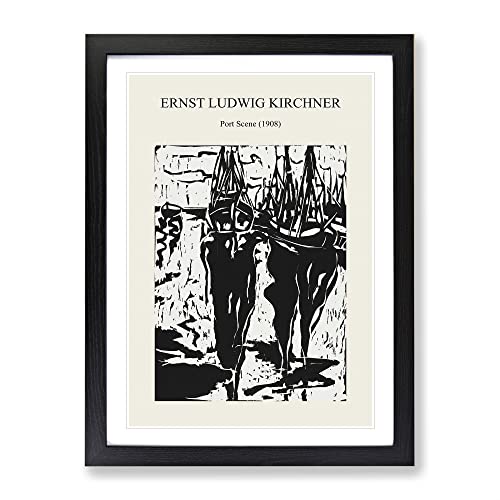 Port Scene By Ernst Ludwig Kirchner Exhibition Museum Painting Framed Wall Art Print, Ready to Hang Picture for Living Room Bedroom Home Office Décor, Black A2 (64 x 46 cm)