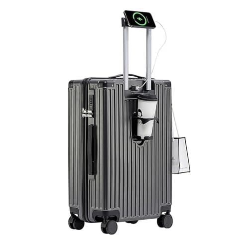 lesulety Large Hard Shell Suitcase 4 Wheels Lightweight Big Hand Luggage Case 28 Inch Luggage Suitcase with USB Charger,Cup Holder and Lock,73x46x32cm,Gray,L