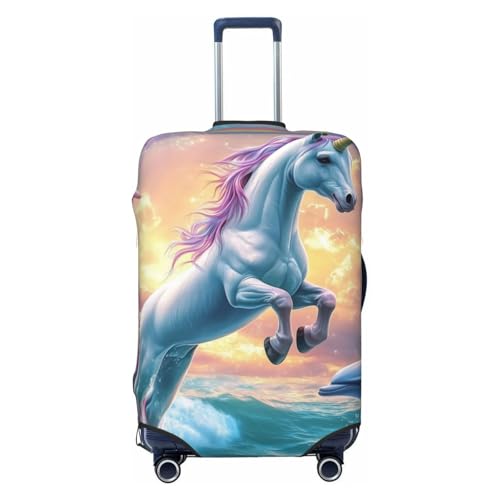 Helhappy Travel Luggage Cover Suitcase Protector, Unicorn Dolphin Fantasy Rainbow Colorful Washable Print Spandex Elastic Luggage Cover 25-28 Inch