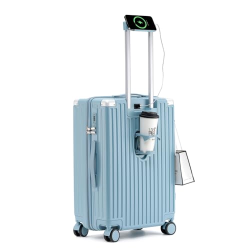 lesulety Large Hard Shell Suitcase 4 Wheels Lightweight Big Hand Luggage Case 28 Inch Luggage Suitcase with USB Charger,Cup Holder and Lock,73x46x32cm,Blue,L