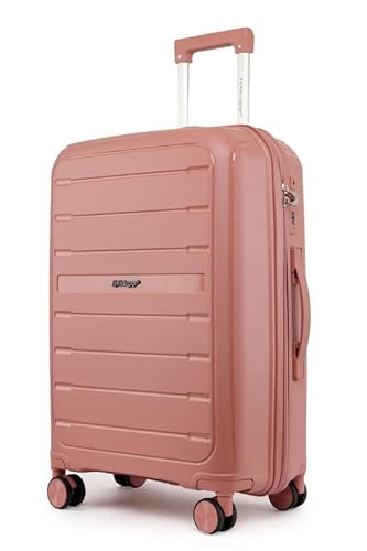 Fly Kite Luggage 28 Inch Large Suitcase 100% Polypropylene Hard Shell with Aluminium Trolley Handle, Real TSA Secure Lock 3 Digit, 360° Smooth Wheels Lightweight Suitcase|Rose Gold
