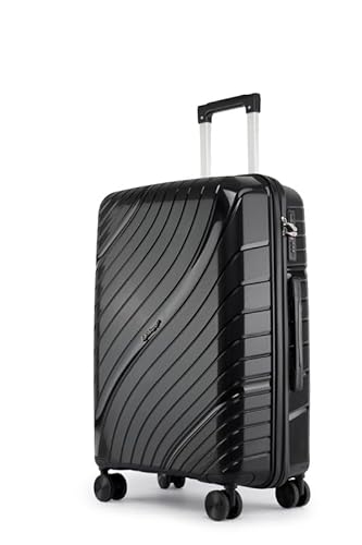 Fly Kite Luggage 28 Inch Large Suitcase 100% Polypropylene Hard Shell with Aluminium Trolley Handle Real TSA 3 Digit Secure Lock 360° Smooth Wheels Lightweight Suitcase|Black