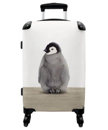 NoBoringSuitcases.com® Children's Luggage Kids Suitcase for Boys Girls- Hand Luggage - Cabin Suitcase - Travel Suitcase with Wheels - Trolley 55x40x20 cm - Penguin Watercolour - White - 20 Inch - 10kg