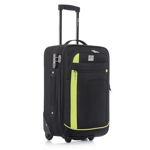 ATX Luggage 55x35x20cm Cabin Suitcase-Lightweight Softshell Carry-ons Approved for Ryanair EasyJet British Airways with 2 Wheels and Built-in Combination Lock (Black/Lime, 48 Liter)