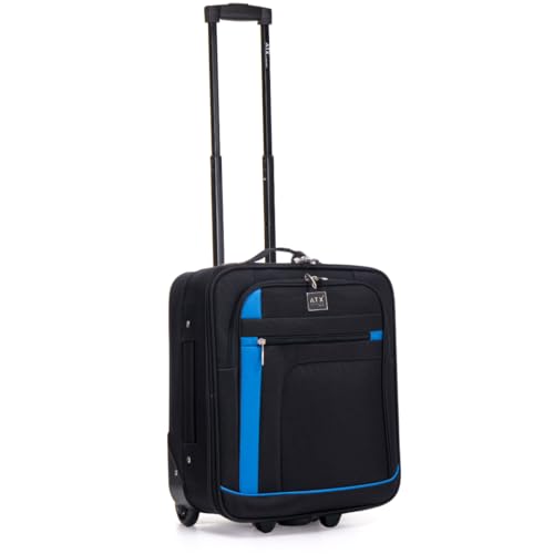 ATX Luggage 45x36x20cm EasyJet | 2 Wheels Under Seat Carry-Ons | Soft Shell Lightweight Cabin Bag | Built-in Combination Lock| Black/Blue | 29 Liter
