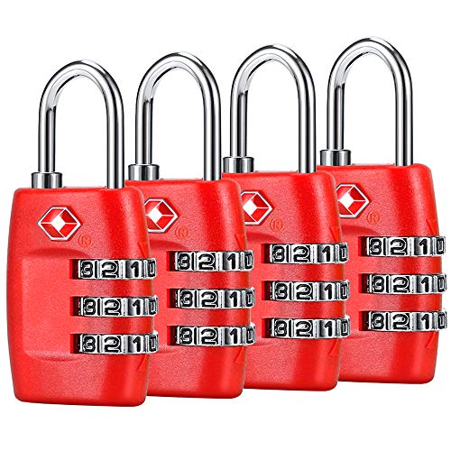 TSA Luggage Locks (4Pack) - 3 Digit Combination Padlocks - Approved Travel Lock for Suitcases & Baggage (Red)