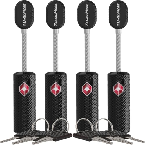 4-Pack TSA Approved Luggage Locks with Keys for Travel | Flexible, Ultra Secure Mini Key Padlocks Made from Zinc Alloy | Luggage Locks | TSA Locks | Black