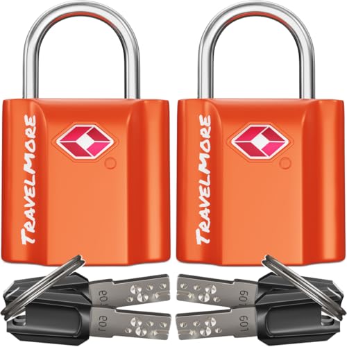 Suitcase Padlocks with Keys – TSA Approved – Travel Locks for Luggage – 2-Pack, Orange