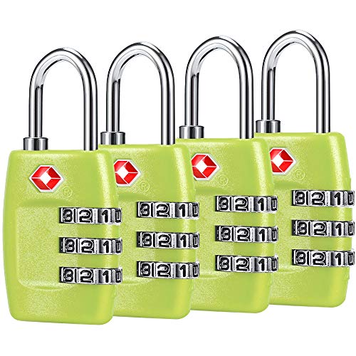 TSA Approved Luggage Lock - 4 Digit Combination Padlocks with a Hardened Steel Shackle - Travel Locks for Suitcases & Baggage