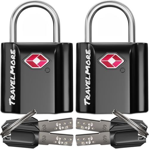 Suitcase Padlocks with Keys – TSA Approved – Travel Locks for Luggage – 2-Pack, Black