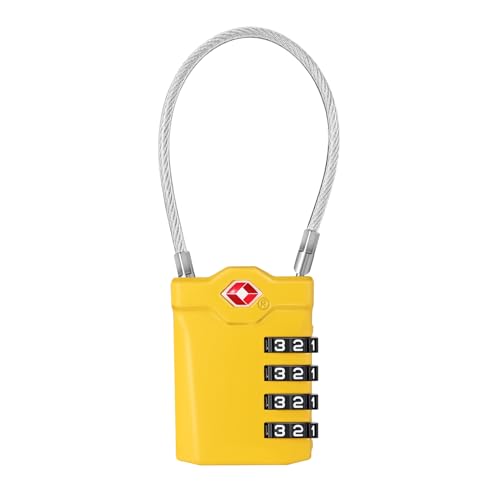 ZHEGE TSA Approved Luggage Locks, Suitcase Padlocks, White Code Padlock with Open Alert Indicator, Flexible Cable Travel Padlock, 4 Digit Combination Padlock for Gym Locker (Yellow