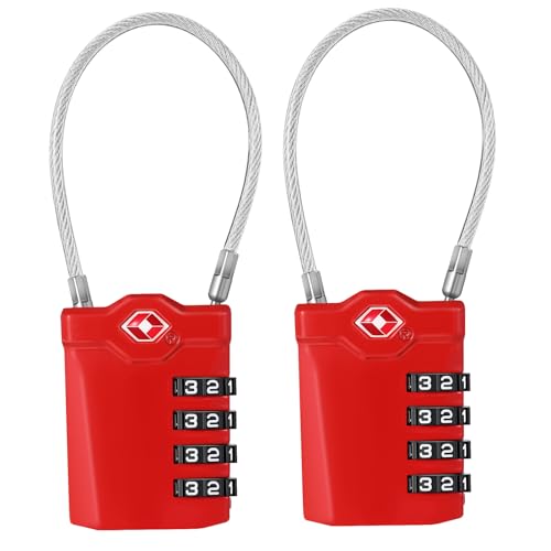 ZHEGE Suitcase Padlocks, TSA Approved Luggage Locks with Open Indicator, 5.5in Flexible Cable, 4 Digit Combination Padlock for Gym Locker, Briefcase, Backpack, Laptop Bag (Red, 2 Pack)