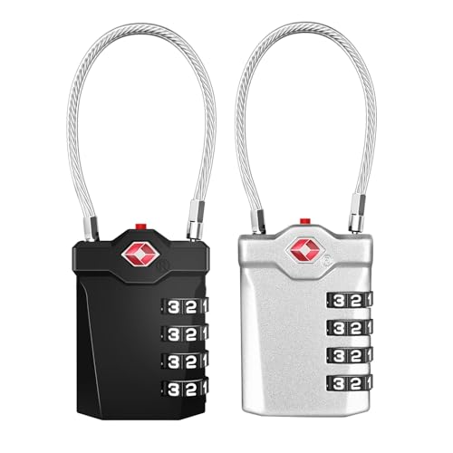 OW-Travel TSA Approved Luggage Locks Suitcase Locks (2 Pack Black) 4 Digit Flexible Cable Suitcase Padlock. Travel Bag Combination Luggage Padlocks for Suitcases. TSA Travel Lock for Bags and Cases
