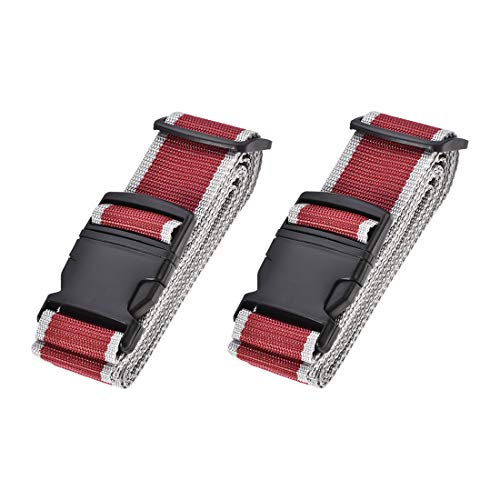 sourcing map Luggage Straps Suitcase Belts with Buckle Label, 2Mx5cm Adjustable PP Travel Bag Packing Accessories, Red Gray 2Pcs